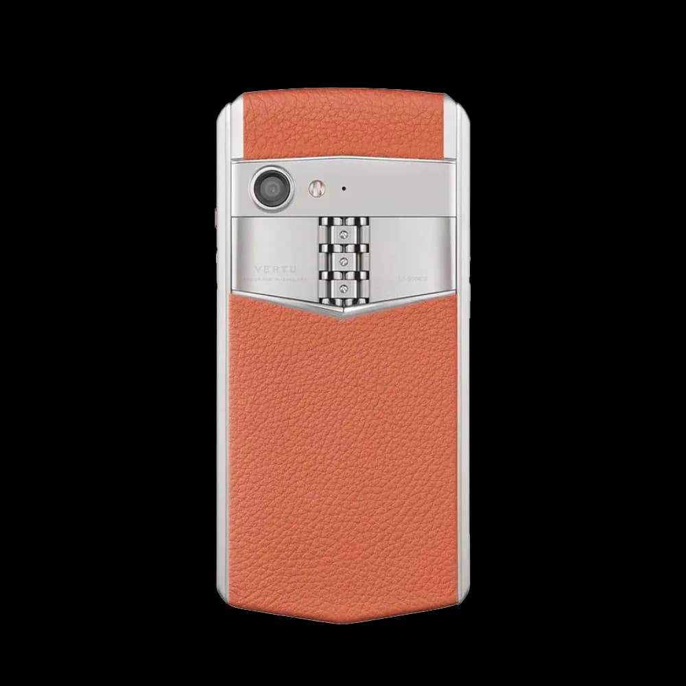 Роскошный дизайн: Смартфон Vertu Aster P в классическом исполнении из телячьей кожи в стиле Барокко (Baroque Calfskin), цвет «Рассветный оранжевый».