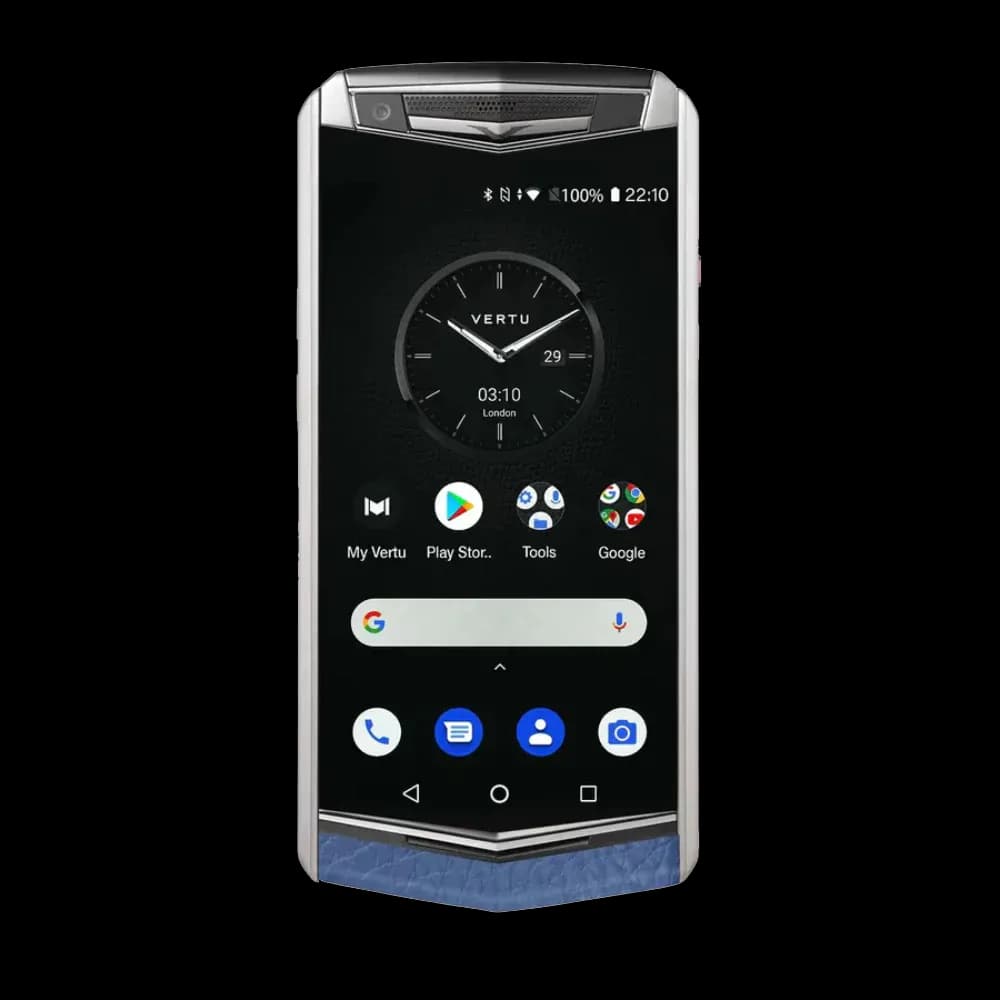 Роскошный дизайн: Смартфон Vertu Aster P в классическом исполнении из телячьей кожи в стиле Барокко (Baroque Calfskin), цвет «Темно-синий».