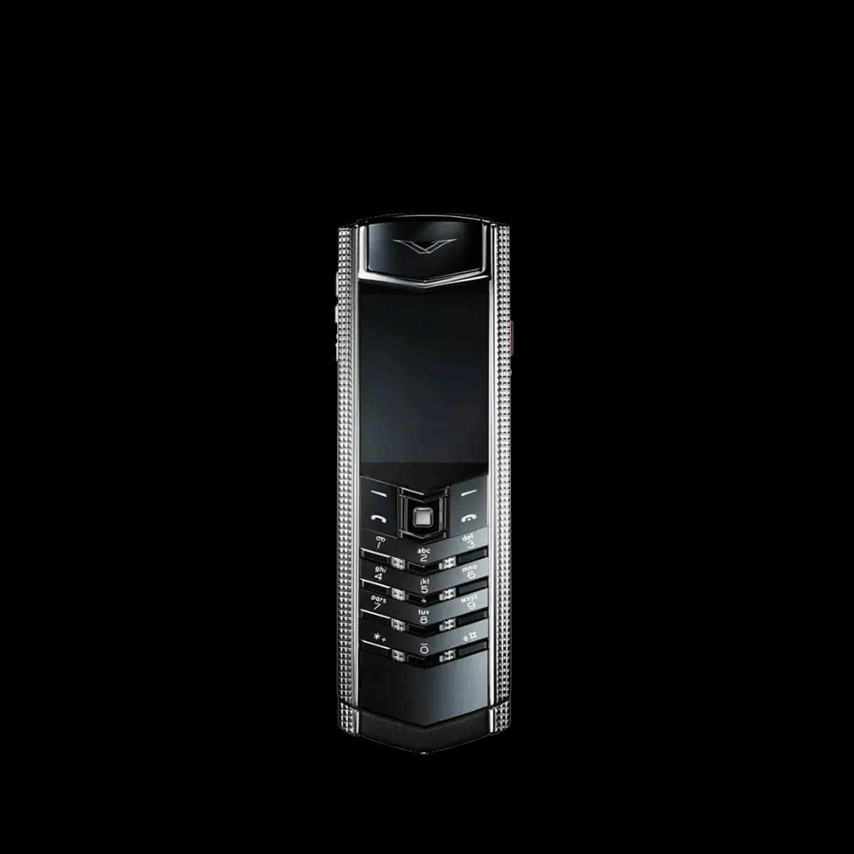 Классическая роскошь: Легендарный телефон Vertu Signature V с корпусом, украшенным гильоше Clous De Paris («Гвозди Парижа»). Элементы выполнены в цвете «Чистое Серебро» (Pure Silver).